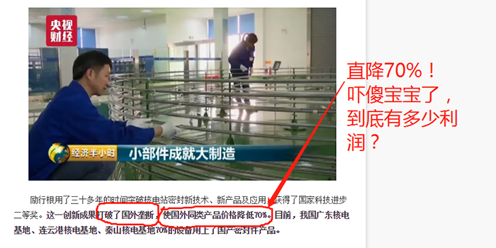 經(jīng)過媒體報(bào)到,我們也了解到文中介紹的是在船舶、核電及軍工等各個(gè)領(lǐng)域的建設(shè)中,都有一個(gè)必不可少的“小零件”叫做密封件。對于大型的核電站來講,它是核安全一級設(shè)備的關(guān)鍵零部件,是防止放射性物質(zhì)泄漏的重要保障。就是這樣一個(gè)小小的密封件,被美國公司壟斷了長達(dá)半個(gè)多世紀(jì)。