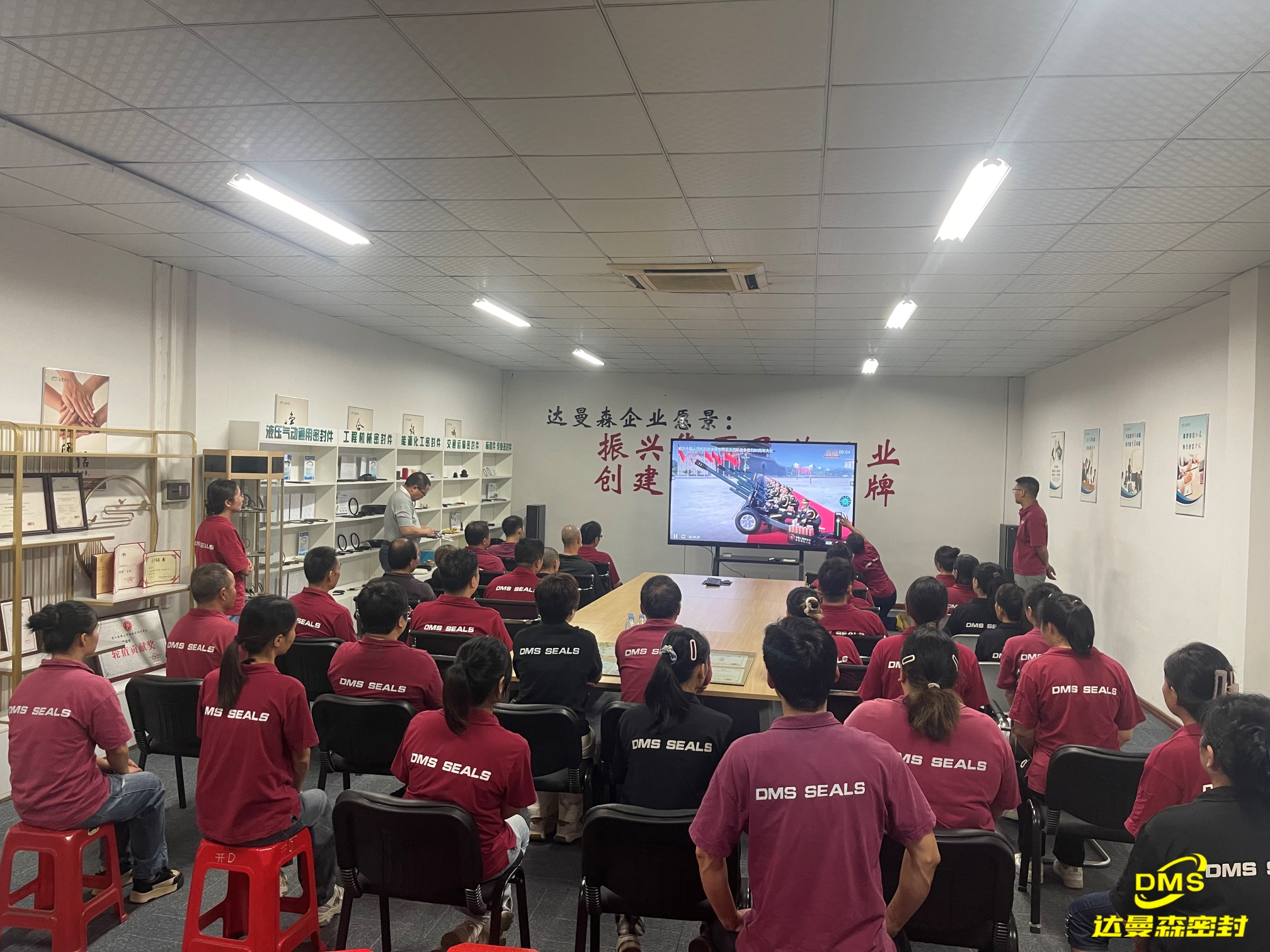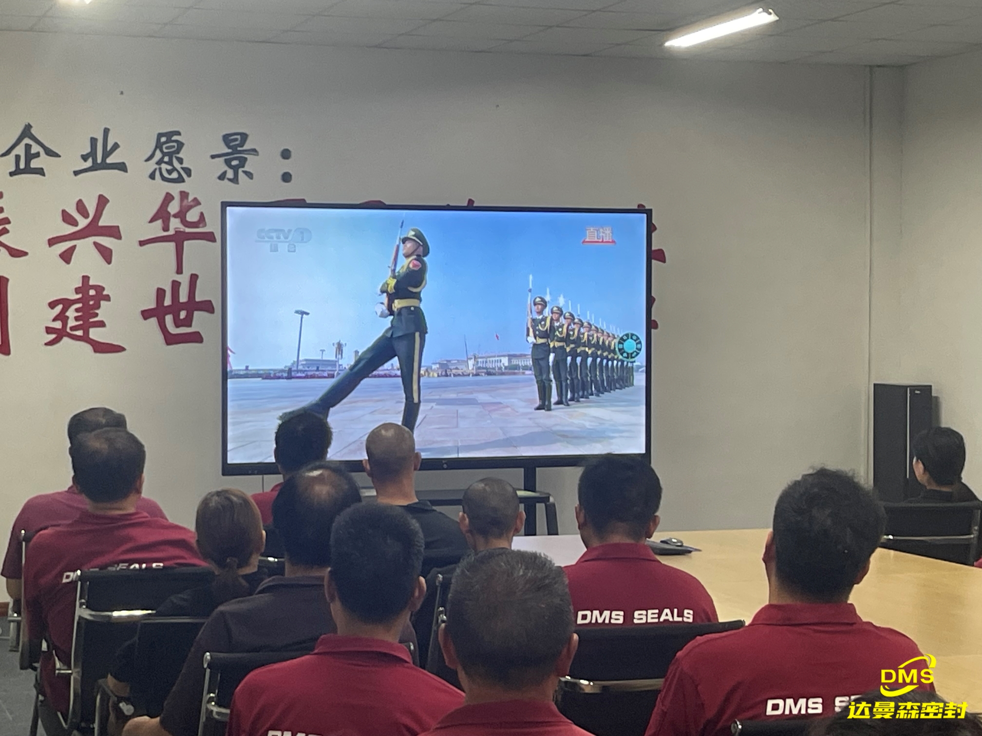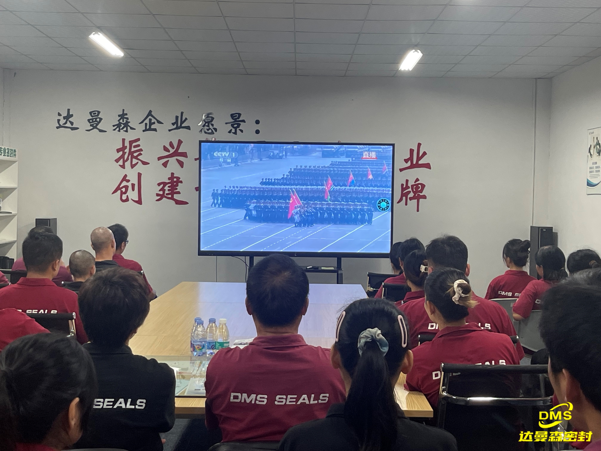 公司組織全體員工,早早的就在會(huì)議廳坐好,難掩興奮的情緒,認(rèn)真的通過網(wǎng)絡(luò)直播觀看了閱兵儀式現(xiàn)場(chǎng)實(shí)況直播。