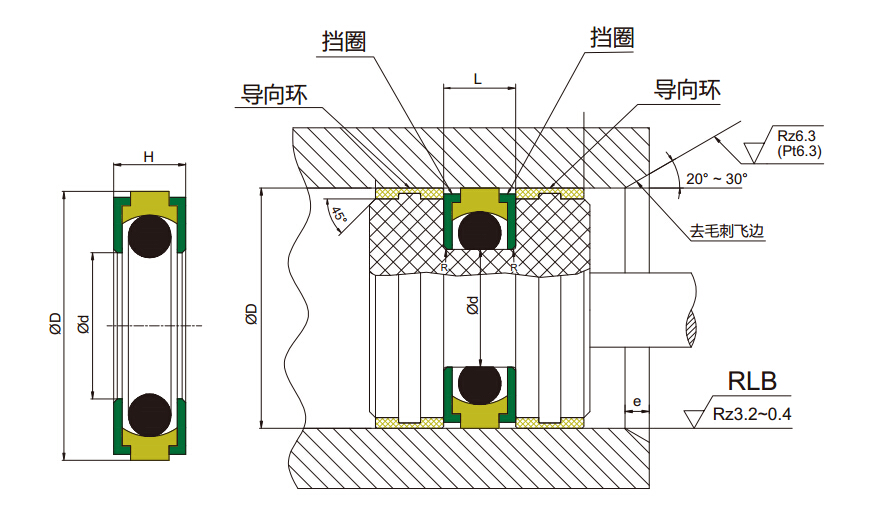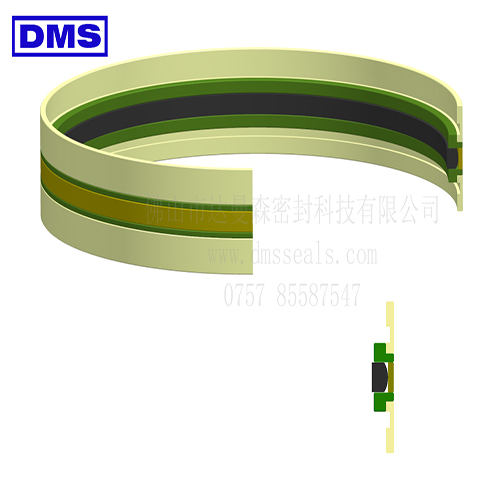 由密封環(huán)、彈性圈、二個擋圈和二個導向套組成,導向套起定位和導向作用,彈性圈提供預緊力并補償密封環(huán)的磨損,密封環(huán)與油缸內(nèi)孔形成配合對偶面而產(chǎn)生密封效果,適用于油缸活塞的密封。DDKK具有雙向密封效果。