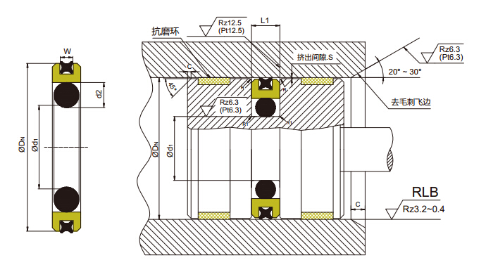-溝槽設(shè)計簡單,安裝空間小。溝槽尺寸符合ISO 7425/1,可與格來圈、斯特封等互換